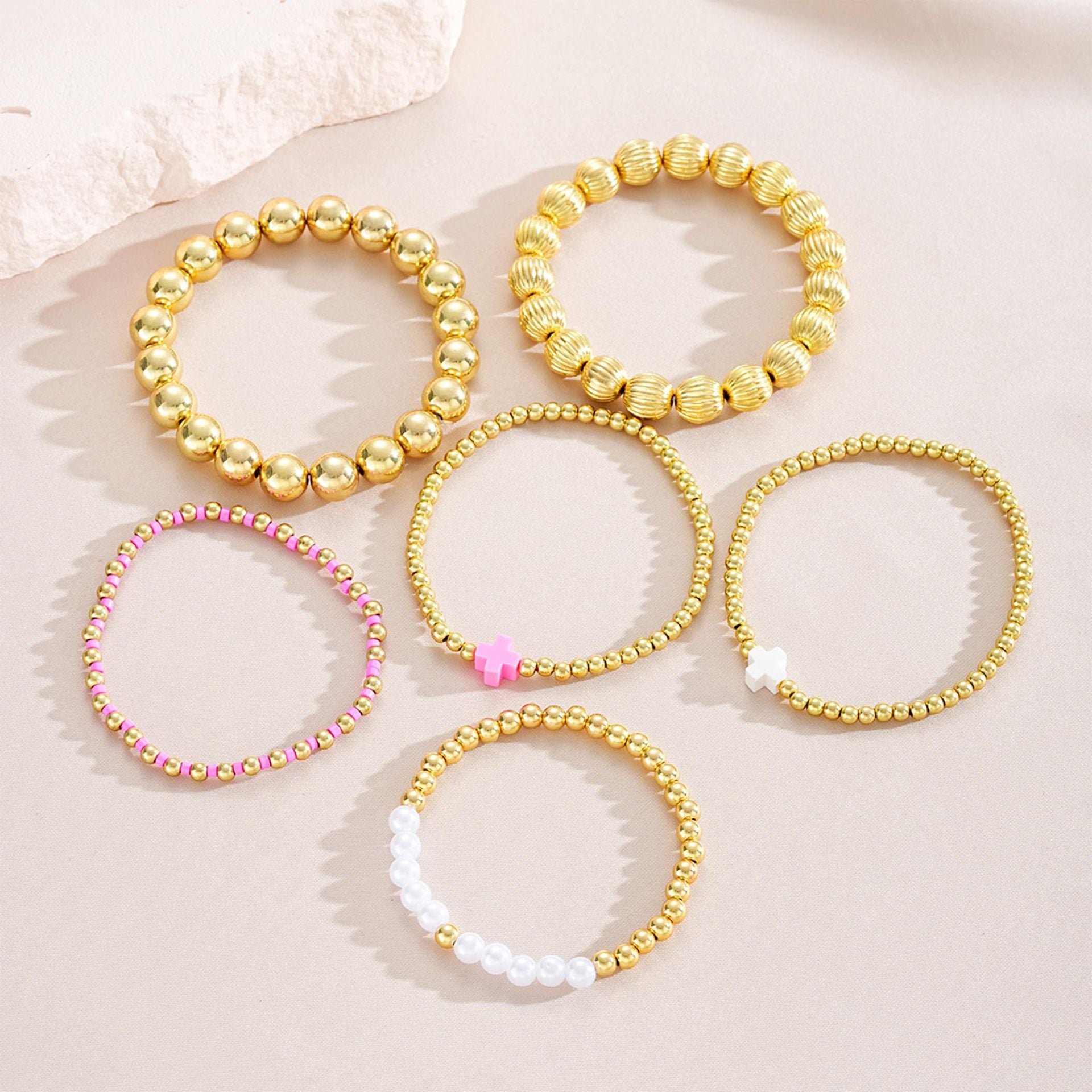 Women's Gold Beaded Fashion Stacking Bracelet Suit